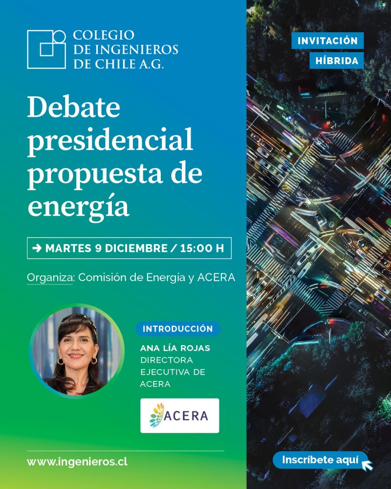 Este evento contará con una introducción a cargo de Ana Lia Rojas, Directora Ejecutiva de ACERA AG. – Asociación Chilena de Energías Renovables y Almacenamiento, abriendo la conversación sobre el rol de las energías y las perspectivas del sector.