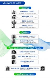 La Cámara de Comercio de Santiago y la Cámara de Comercio de Valencia lo invitan a participar del evento de cierre del proyecto “Ecoaceleradora: Innovación en Modelos de Negocio Circulares para Packaging de eCommerce”, desarrollado en el marco del Programa AL-INVEST Verde de la Unión Europea.