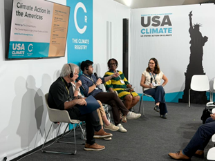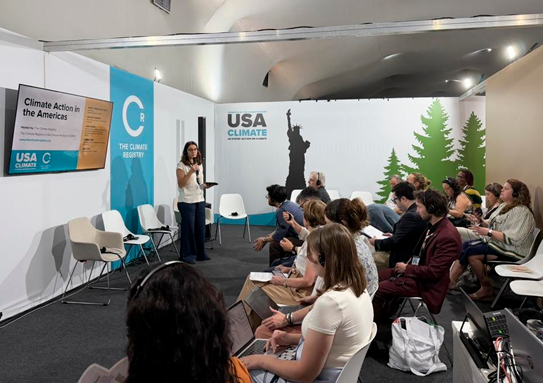 En esta COP30 de Belém, en el Climate Registry’s USA Climate Pavilion, se desarrolló el evento Climate Action in the Americas. Durante esta actividad se desarrolló un panel, donde se presentaron las visiones de expertos de distintos países sobre las oportunidades y desafíos en las Américas en este nuevo paradigma en el que Estados Unidos se aleja de la colaboración climática.