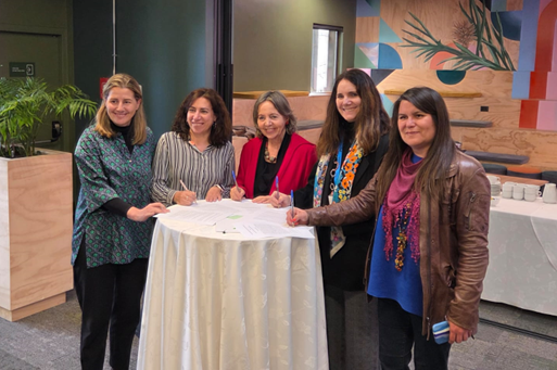 En esta firma participó Margarita Ducci, directora ejecutiva de Pacto Global Chile; María Teresa Ruiz-Tagle, directora ejecutiva de CLG Chile; Constanza Pantaleón, gerenta general de Acción Empresas; Verónica Torres, gerenta de Sostenibilidad de la Cámara de Comercio de Santiago y Nicole Romo, directora de Comunidades de Sistema B. Uno de los objetivos principales de esta alianza es acelerar la implementación de las Contribuciones Determinadas a Nivel Nacional (NDC) a través de la acción climática colaborativa.